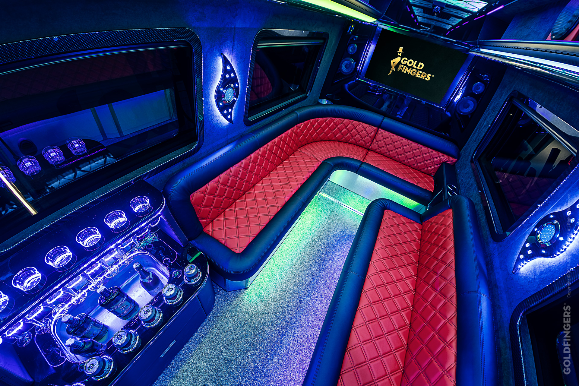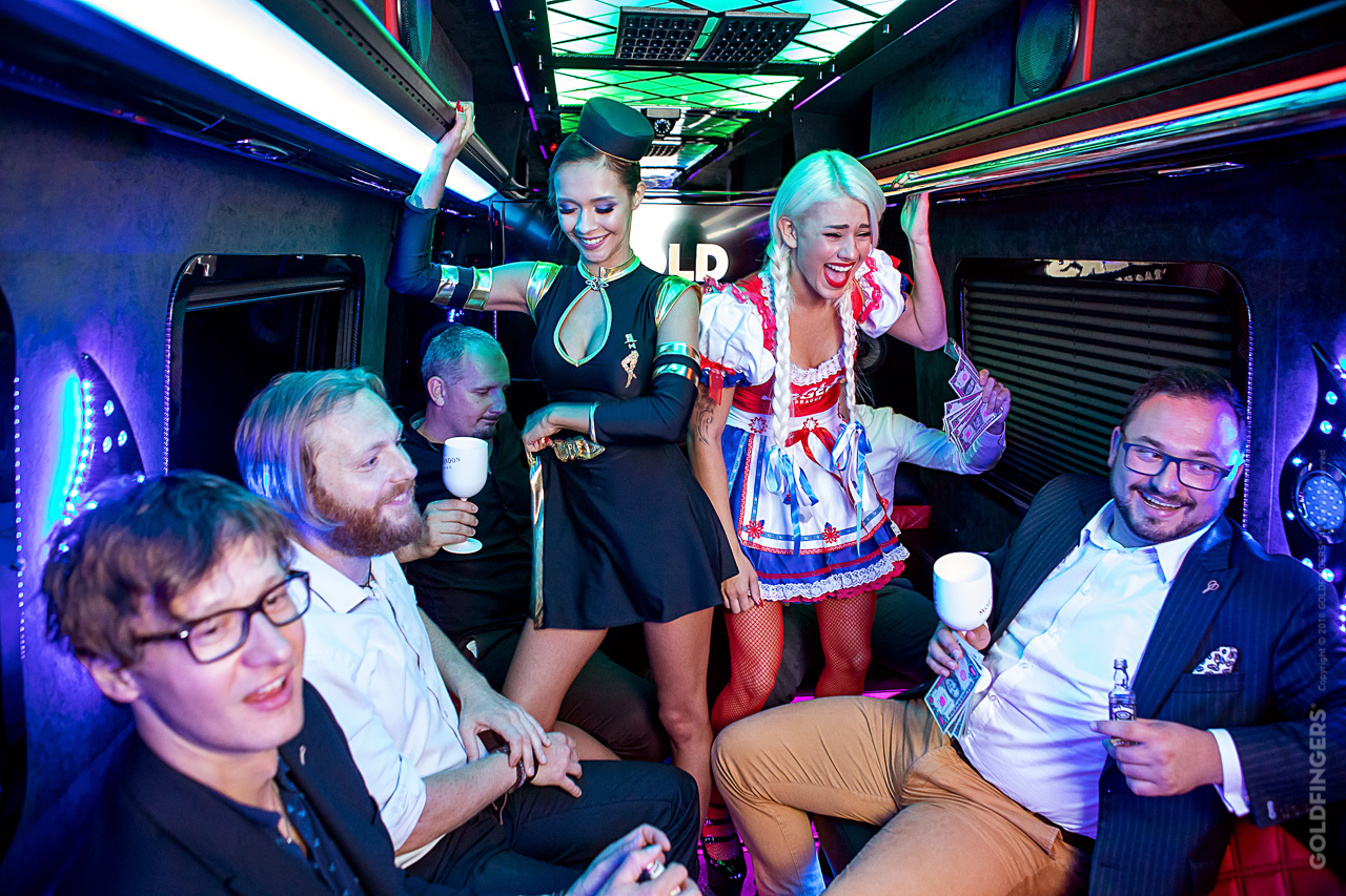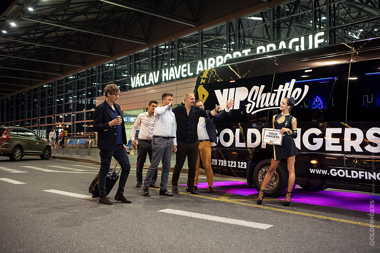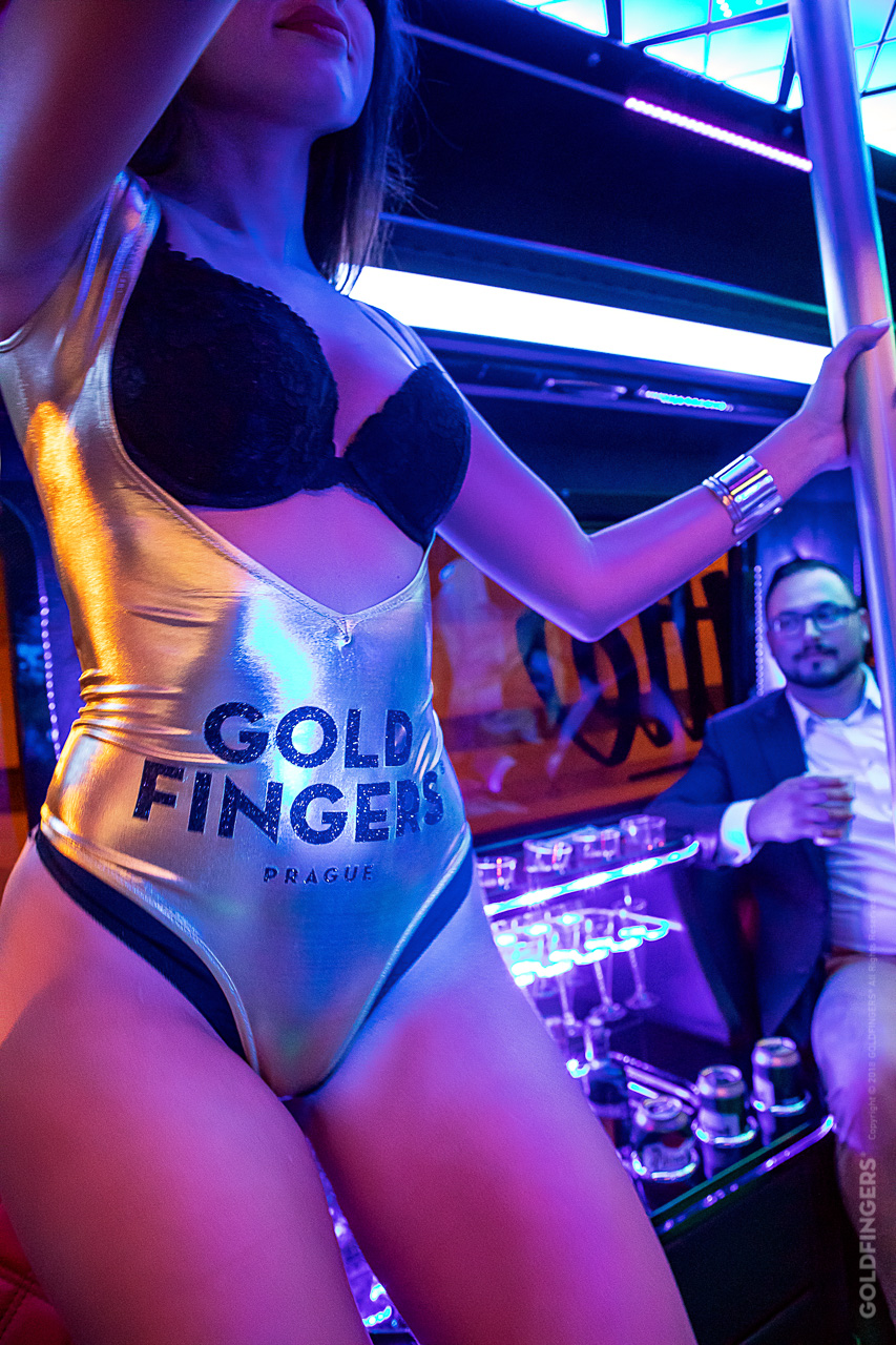 Genießen Sie mit uns eine einzigartige Fahrt in unserem speziell ausgestatteten GOLDFINGERS VIP SHUTTLE. Der luxuriöse Innenraum des Mercedes wurde für die bequemste Art des Fahrens modifiziert. An Bord finden Sie unter anderem eine Bar sowie eine Stange für die Tänzerin. Wir befördern Sie von A nach B, wir können Sie am Flughafen, von einem Restaurant, im Hotel – kurz und gut an jedem beliebigen Ort in Prag abholen und Ihnen das Reisen so angenehm wie möglich gestalten. Mit an Bord ist auch unsere wunderschöne Reiseführerin, und Sie erhalten kostenlos einen Welcome Drink sowie 20 Tipping Dollars. Die Fahrt können Sie sich außerdem mit einem heißen Tanzen (15 Minuten) versüßen lassen. Im Fahrzeug steht Ihnen eine Bar mit alkoholischen und nicht alkoholischen Getränken zur Verfügung, für die Sie gesondert zahlen müssen.
